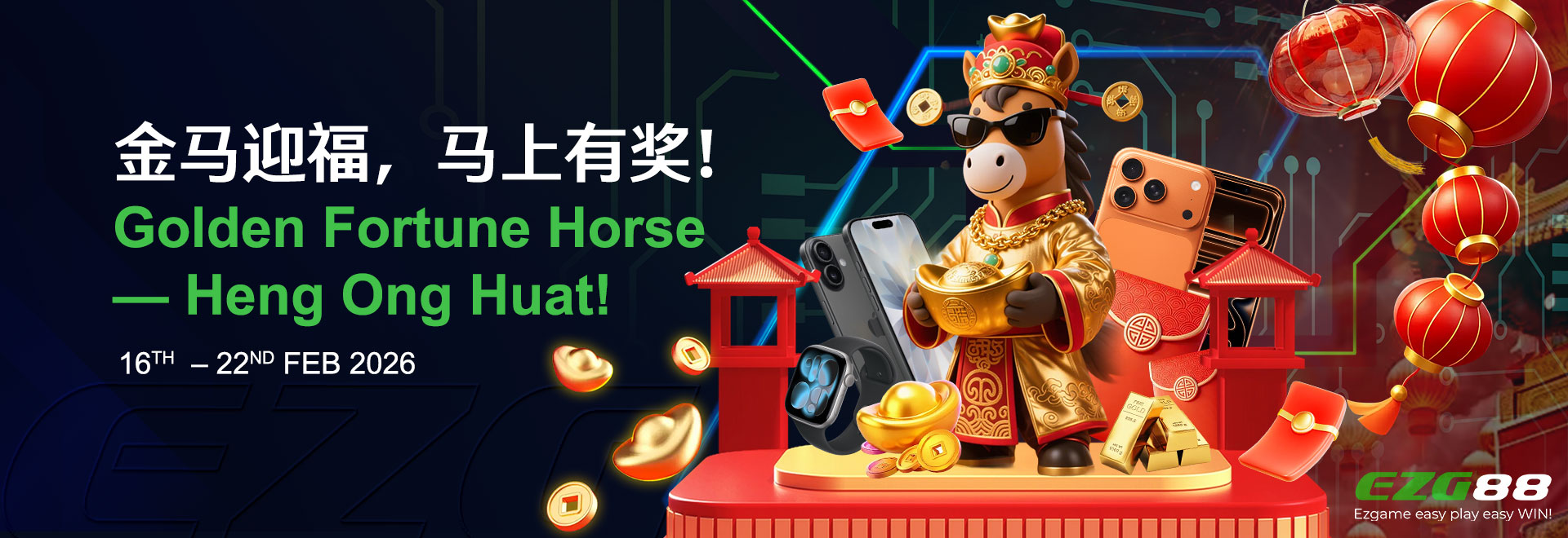 GOLDEN FORTUNE HORSE — HENG ONG HUAT!